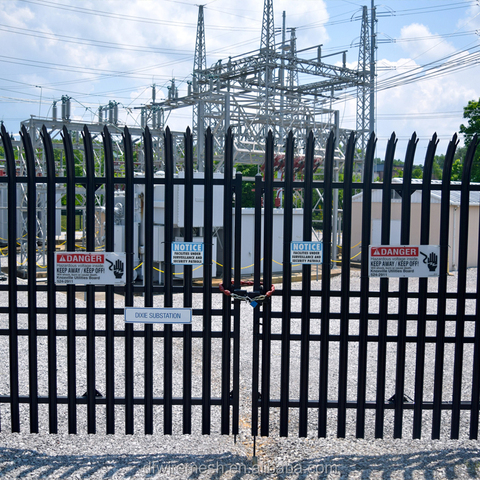 Trang chủ vườn trang trí màu đen palisade rèn tấm sắt hình ống hàng rào thép